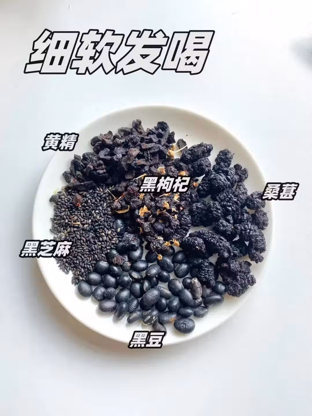 ☑️食材:黑豆+黑芝麻+桂圓+桑葚