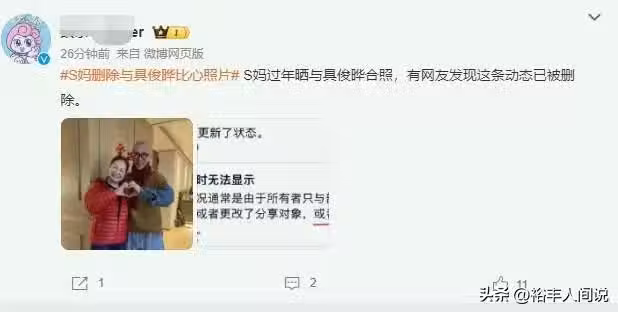 有細心的網友發現,大S媽媽已經悄悄將幾日前分享的比心合照刪除亦或者隱藏,由於行為處於關鍵時刻,所以網友不得不想入非非,由此才有了具俊曄要慌了的猜測。