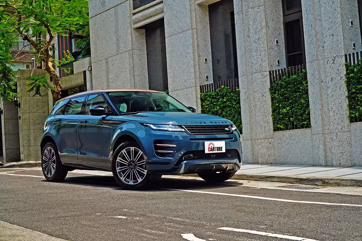 Range Rover Evoque問世之初,就以跳脫傳統SUV的粗獷剛毅設計手法,簡單俐落的身形,有如SUV中的精品西裝,兼具了簡約與摩登科技感,即使改朝換代,也依然延續了一貫的設計語彙,懸浮式的車頂與隱藏式手把,則是Range Rover全車系一致性的特徵。而在2024年式上,提供了三款全新車色,而本次式駕車就式配置了、Tribeca Blue翠貝卡藍車色,同時還Corinthian Bronze柯林斯青銅對比色車頂,另外在水箱護罩下緣飾框、車側飾板、引擎蓋類進氣口飾板、前下側進氣口飾條,以及排氣管偉飾板也都采Corinthian Bronze柯林斯青銅對比色妝點,增添有別於一般單調配色的對比質感,更凸顯Range Rover Evoque與眾不同的特別美感。