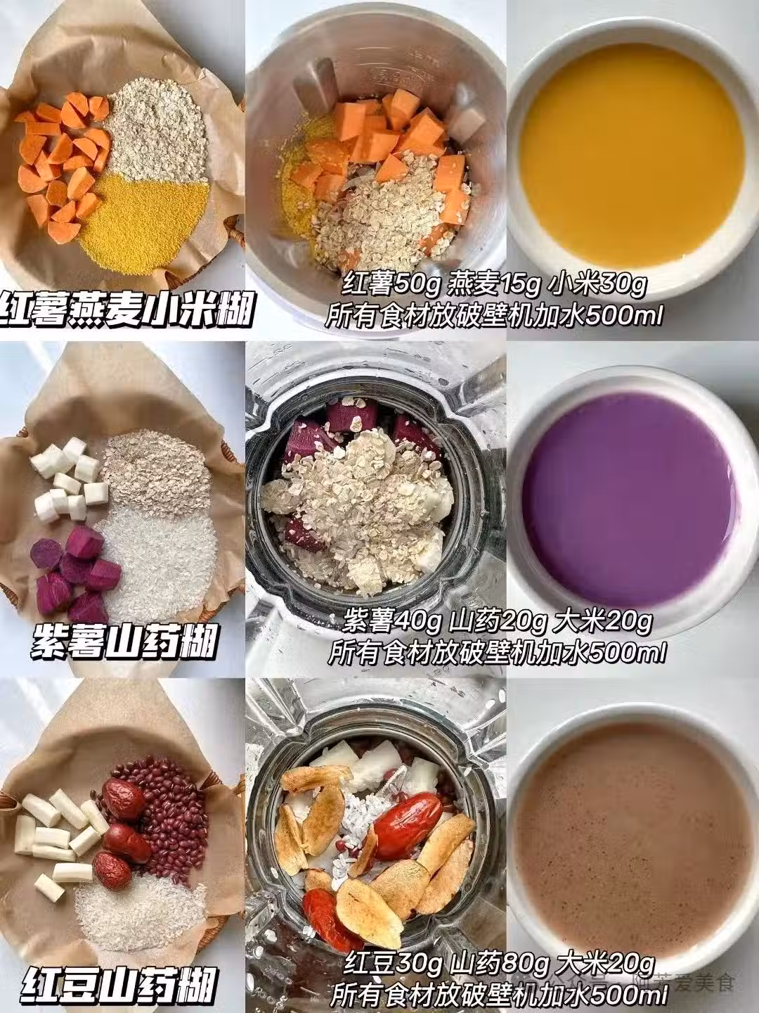 紅薯燕麥小米糊和紫薯山藥糊,他們的口感都是軟糯香甜的,紫薯和紅薯的香味會散發而開,非常的香又好喝,讓人忍不住想喝!
