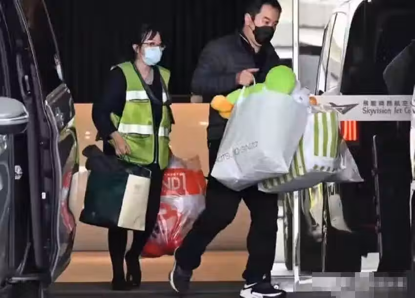 搬運的行李中,還有好幾袋毛絨玩具,應該是大s兩個孩子的,畢竟,一個10歲,一個才8歲。