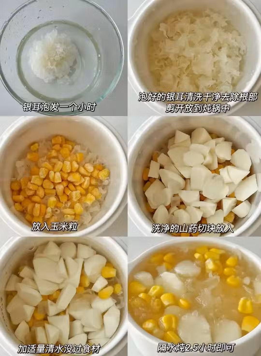 做法:1.銀耳泡發一個小時,泡好的銀耳清洗乾淨去除根部,剪開放到燉鍋中; 2. 放入玉米粒,洗凈的山藥切塊放入鍋里, 加適量清水沒過食材,隔水燉2.5小時即可; 二、西蘭花 西蘭花可全面補充頭髮所需營養,能夠促進皮脂產生,改善發質,同時加速頭皮血液循環,增強頭髮毛囊,使頭髮健康生長。 推薦菜譜:西蘭花番茄木耳炒雞蛋