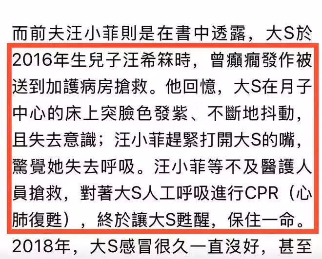 汪小菲後來回憶說,大 S 生產時體力耗盡,肚子絞痛得厲害,而且對止疼藥過敏,人就昏迷了,還瞬間缺氧。