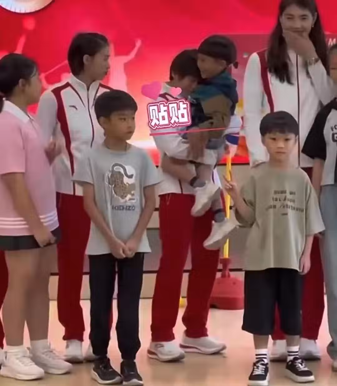 全紅嬋就很自覺的融入到孩子的遊戲隊伍中,蹲在地上與孩子們玩,甚至在最後的合影環節,立馬就單手抱著孩子,甚至與孩子貼貼,與大家合影留念。