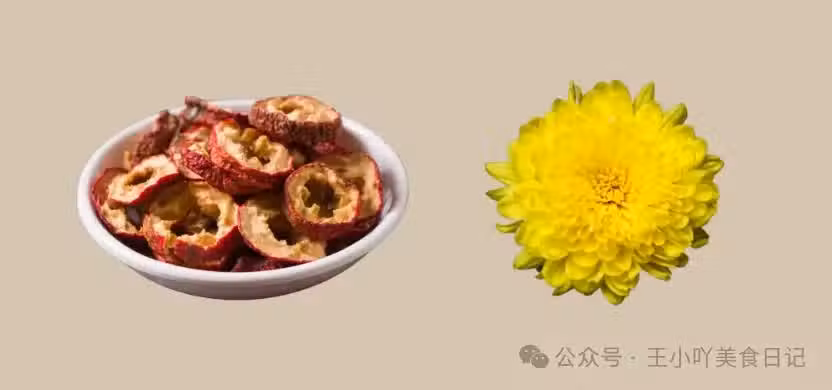 功效:菊花清熱解毒,明目降壓,與山楂搭配,適合容易上火且有積食的人群。
