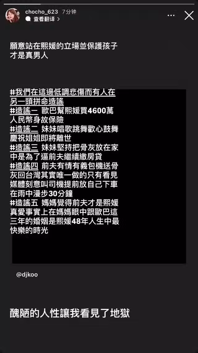 造謠四:前夫有情有義包機送骨灰回台,其實唯一做的只有看見媒體刻意教司機提前放自己下車在雨中漫步30分鐘。