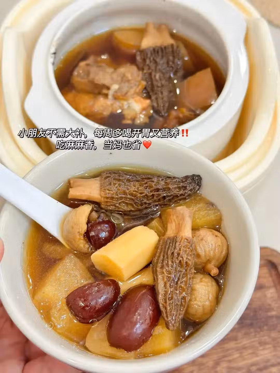 - 蘋果的清甜、無花果的軟糯香甜、紅棗的香甜以及羊肚菌獨特的鮮味,能讓湯的口感豐富、味道鮮美,從而增加小朋友的食慾,讓小朋友更願意進食。