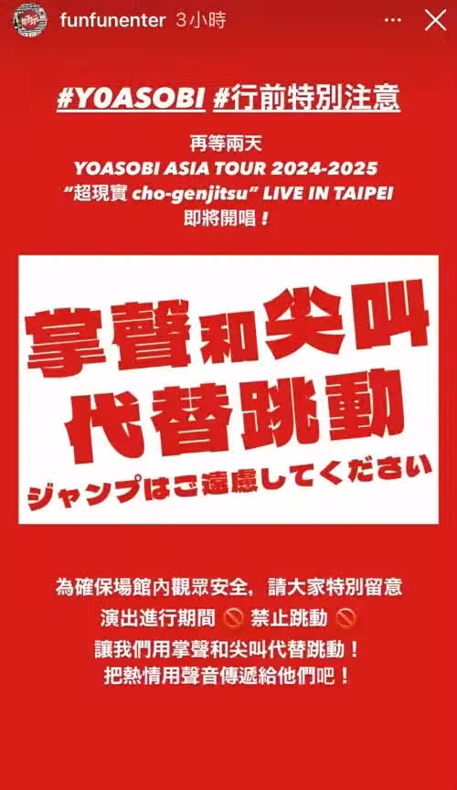 ▲YOASOBI小巨蛋演唱會「嚴禁跳動」。(圖/好玩國際文化)