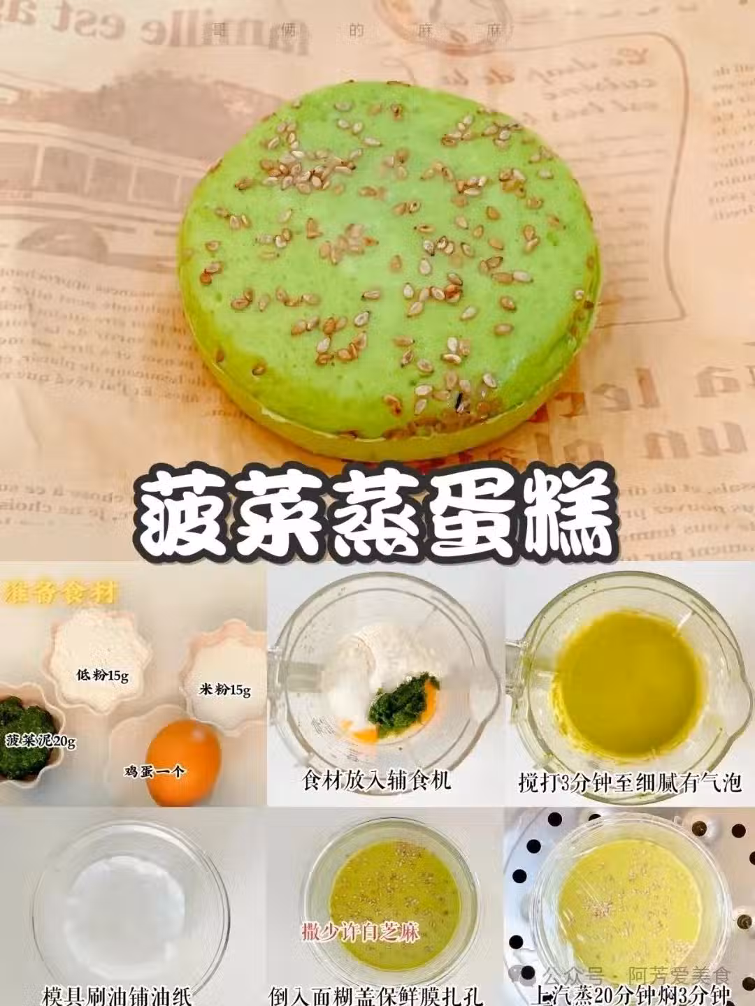 菠菜蒸蛋糕,特別適合不愛吃蔬菜的小朋友們,菠菜汁會非常的清爽,再搭配麵粉口感吃起來是清香軟糯的。