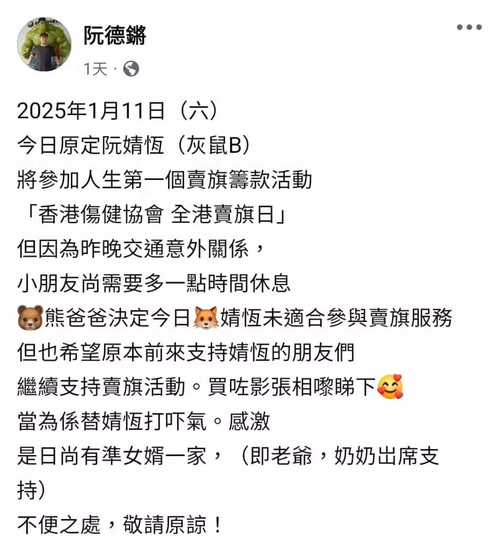 阮德鏘昨日(11日)表示因意外已決定休息。
