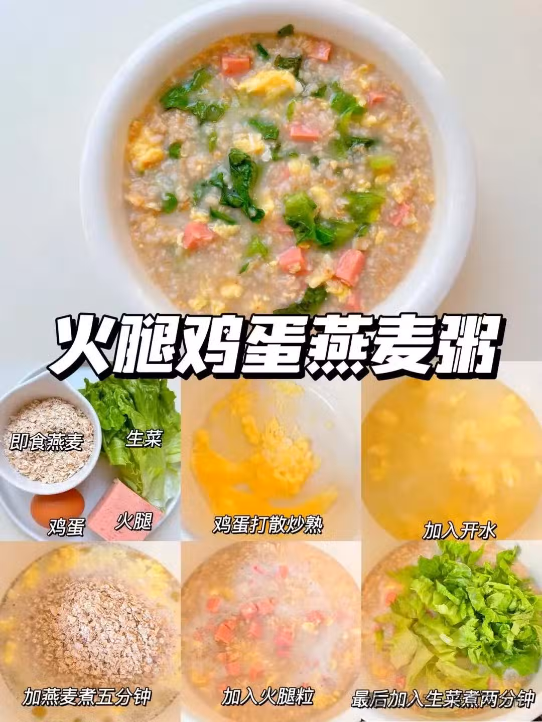 火腿和雞蛋的經典搭配,誰能不愛?加上燕麥後,既有飽腹感又很健康。喝上一碗,簡直就是冬天的早餐神器。