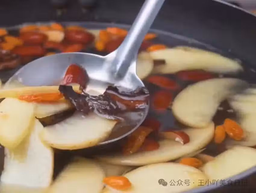打開鍋蓋,一股香甜的氣味撲鼻而來,這就是我們的蘋果核桃分心木紅棗湯了。