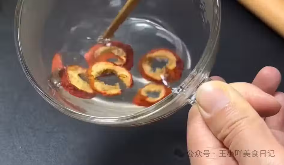 2、清洗山楂干:將山楂干放入杯子中,倒入適量的80度左右的熱水。用勺子或筷子輕輕攪拌,利用水的衝擊力將山楂干表面的灰塵、雜質和農藥殘留沖洗乾淨。這一步相當於「洗茶」,是確保飲品安全的重要步驟。