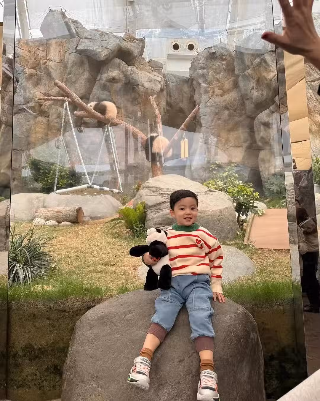 楊怡帶一雙兒女看大熊貓,母子三人好歡樂,小珍珠和弟弟顏值好高