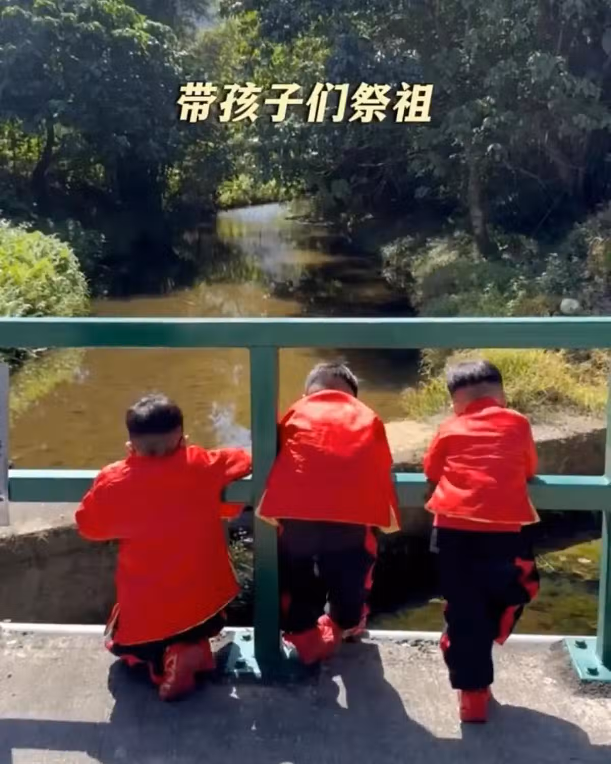 胡杏兒春節帶三個兒子回祠堂祭祖,化身客家媳婦,挑扁擔很接地氣