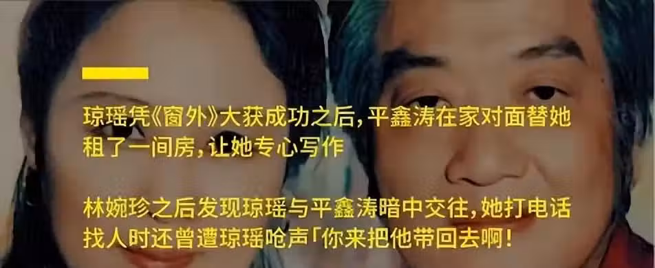 林婉珍女士曾寫過一本回憶她、瓊瑤、平鑫濤的《往事浮光》,其中就有講到關於瓊瑤年輕時候如何處理三者關係的細節。