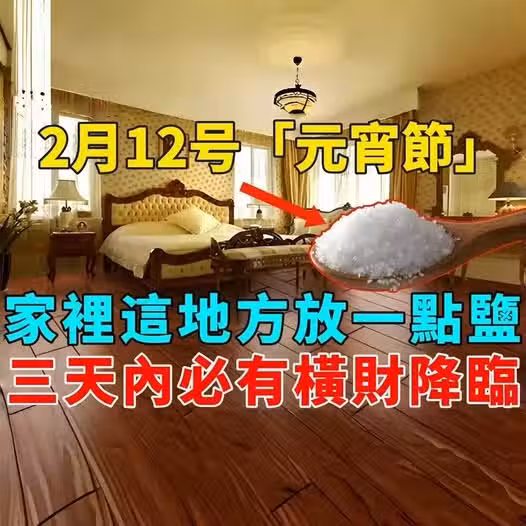 元宵節是中華傳統的重要節日,不僅象徵著團圓和美滿,還是祈求好運與財富的黃道吉日。 在這個特別的日子裡,若能掌握適當的方法,便能為自己和家人帶來財運與福氣。 其中,一個簡單但極為靈驗的招財秘法,就是在家中特定位置放鹽,三天內必有橫財降臨!