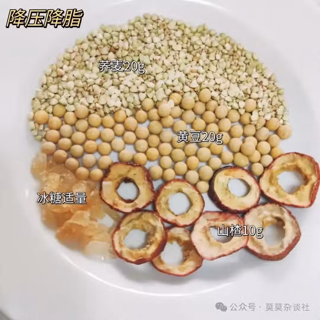 食材:蕎麥20g | 黃豆20g | 山楂10g | 冰糖適量