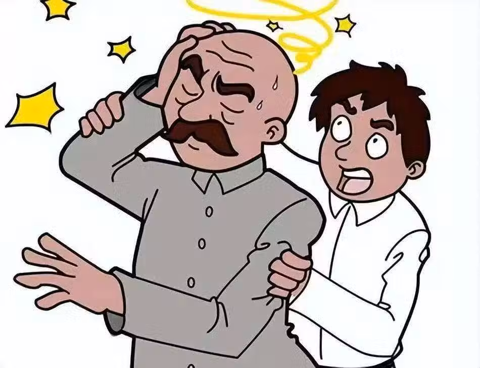 第二個前兆:病人突然感覺頭暈,周圍事物出現旋轉,站不穩,最終暈倒在地。