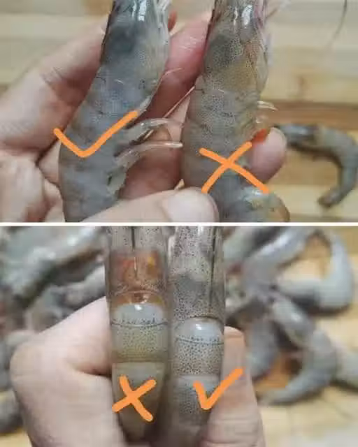 健康的蝦,體表光滑,顏色自然,蝦殼有光澤,蝦肉緊實有彈性。