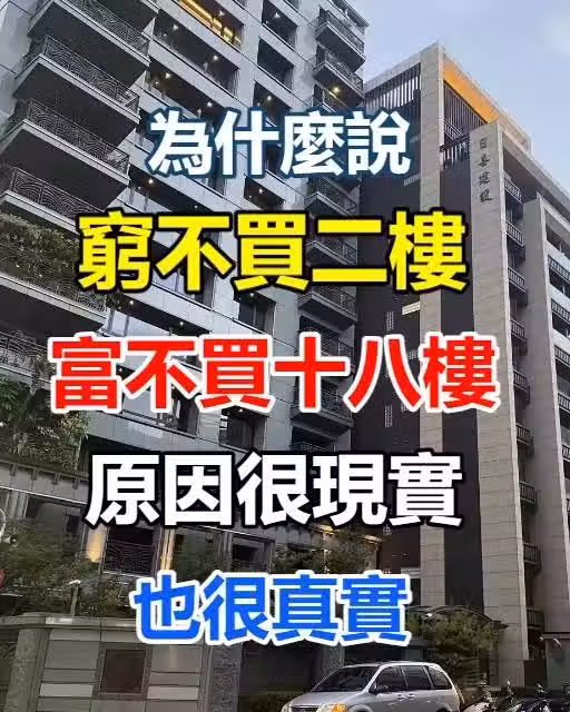 在繁華都市中辛苦打拚,得有一處自己的住所,才有一份歸屬感,因此,選對房子很重要,不過,為什麼說 「窮不買二樓,富不買十八樓」,原因很現實,也很真實。