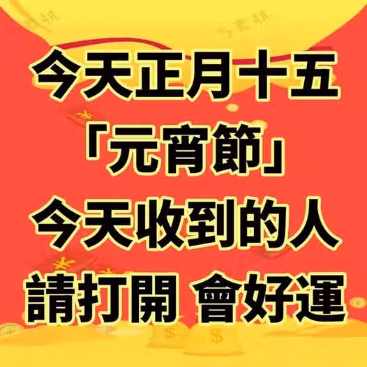 今天正月十五!「元宵節」今天收到的人請打開!會好運