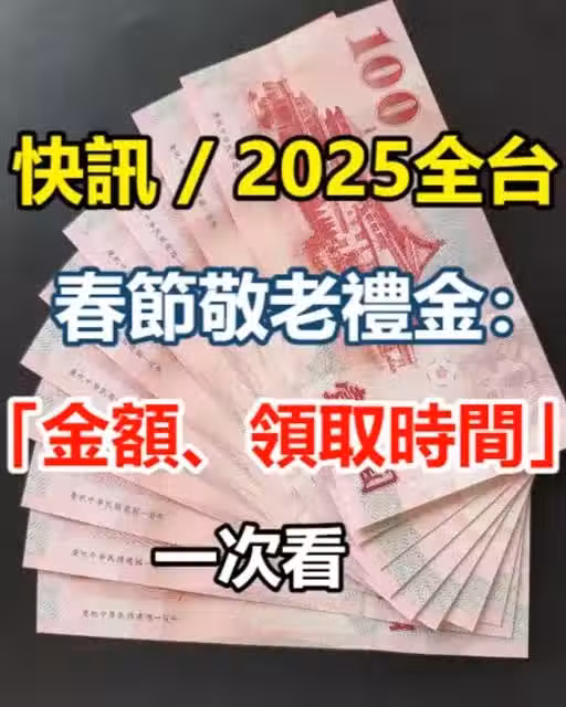 快訊 / 2025全台春節敬老禮金: 「金額、領取時間」一次看!