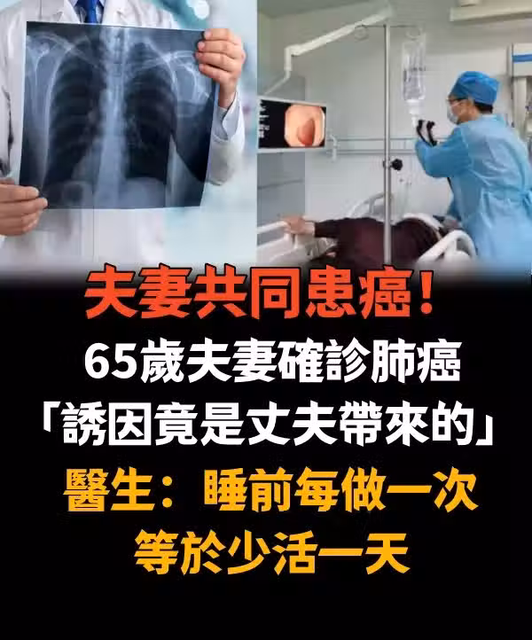 夫妻共同患癌!65歲夫妻確診肺癌「誘因竟是丈夫帶來的」 醫生/睡前每做一次等於少活一天