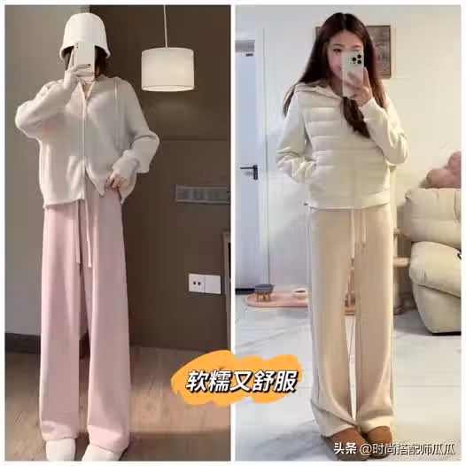 不推薦素人穿無痕褲,可以選擇穿柔軟的雲朵褲,在這個季節也恰巧合適,能化解沉悶。給人帶來溫暖。雲朵褲採用柔和的材質和簡單的低飽和配色,有雲朵那種軟乎乎的感覺,這也是它命名的由來,雖然褲型寬鬆,但非常有垂墜感,上身不用擔心貼合腿部的問題,會顯得整個下半身又直又修長。