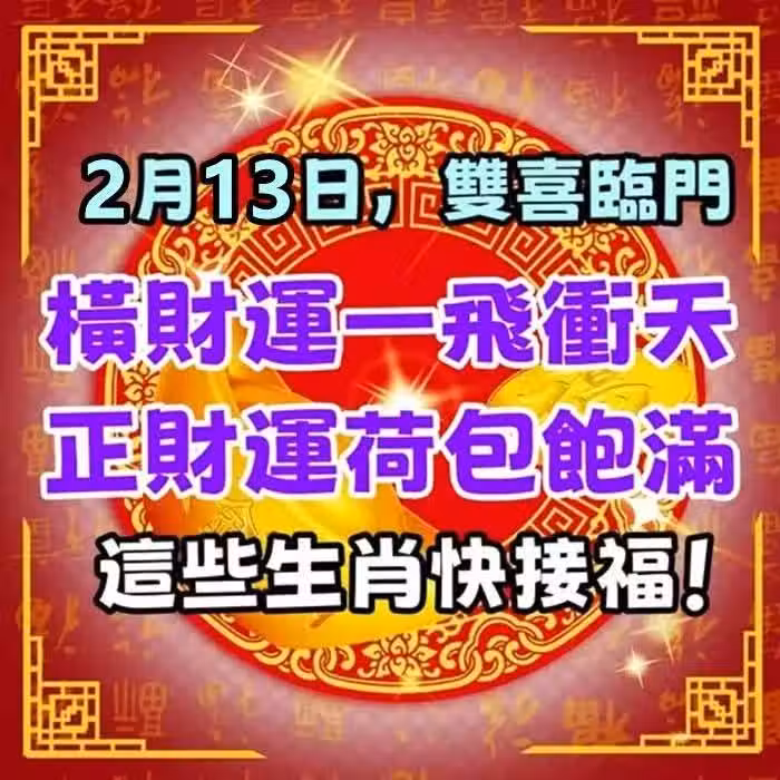 2月13日雙喜臨門,橫財運一飛沖天,正財運荷包飽滿!這些生肖快接福!
