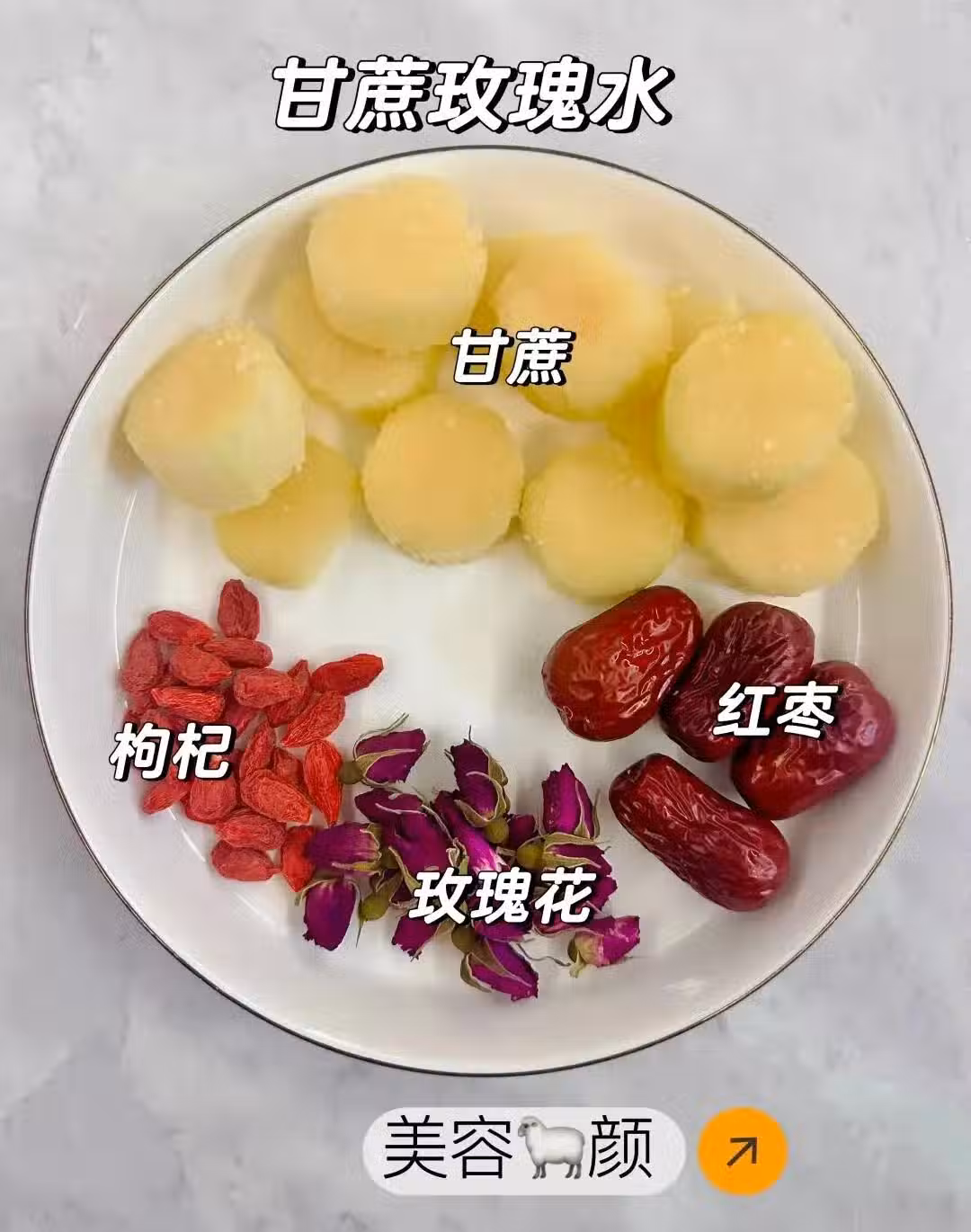 食材準備:甘蔗➕紅棗➕枸杞➕玫瑰花