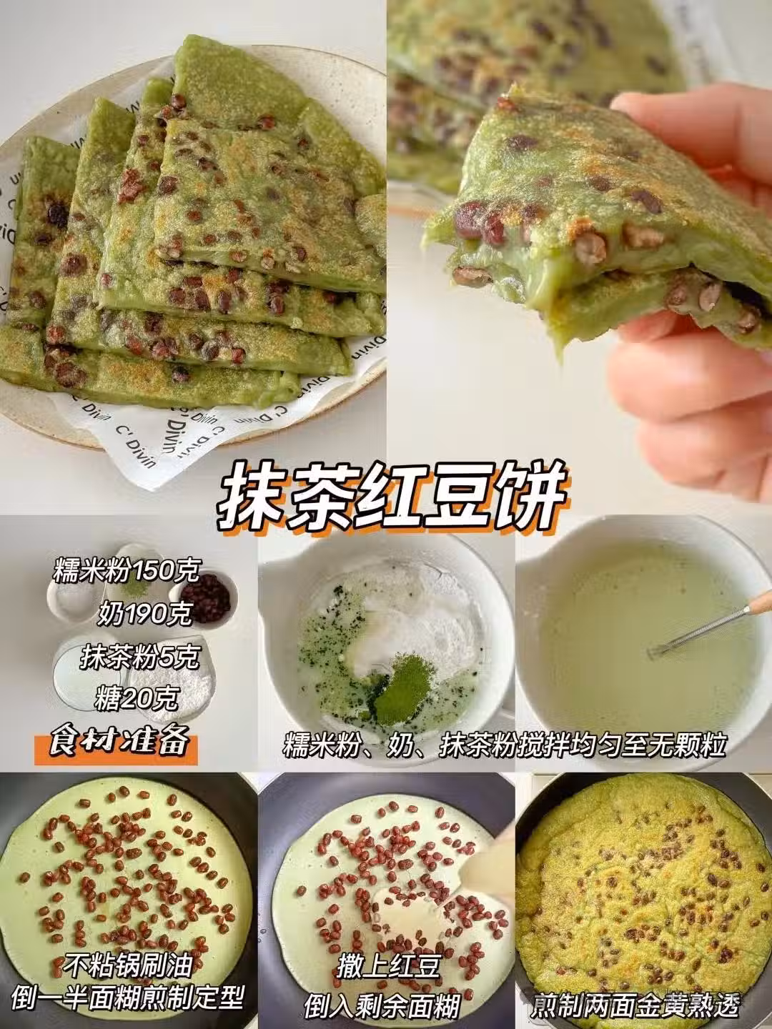 抹茶粉混進糯米皮,紅豆沙當餡兒,小火慢煎。微苦茶香撞上甜糯紅豆,吃完感覺自己能寫俳句!建議配綠茶,假裝在京都度假(實際在工位摸魚)。