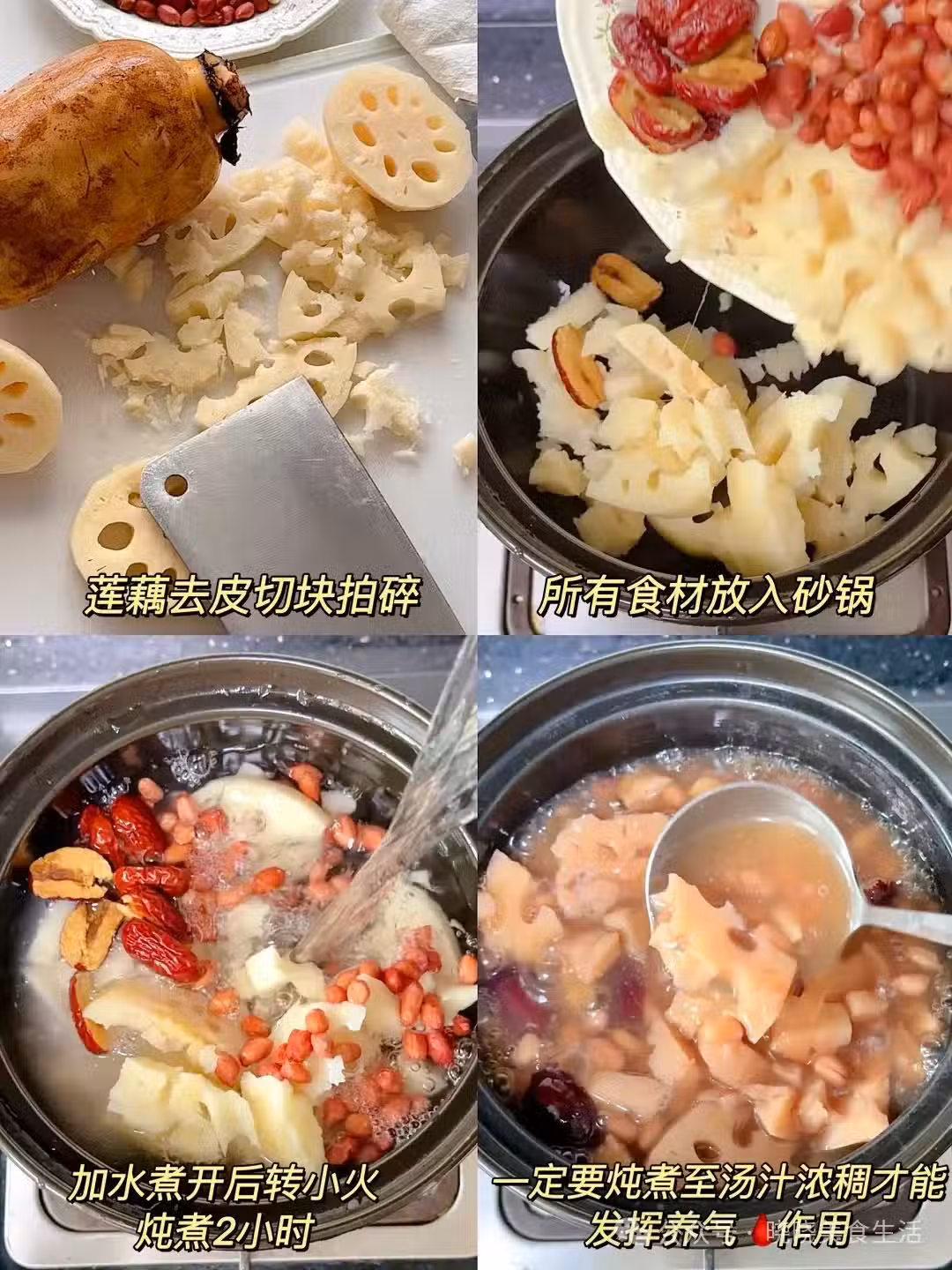 養氣🩸還不上🔥 蓮藕花生湯是清補的~大人👶🏻都可以喝! 蓮藕~潤養氣色 健pi開胃 再搭配花生紅棗、很適合面色暗黃、脾胃弱的女生喝! 食材:蓮藕1節、花生30g、紅棗6顆。做法:藕洗乾淨去皮切塊,花生洗乾淨,紅棗去核,鍋中放適量水,加入所有食材,水開後轉小火煮40分鐘,可以放鹽也可以不放。