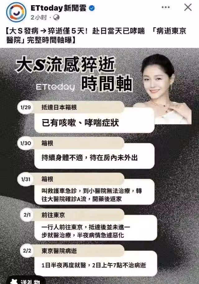 雖然媒體證實大S的最終死因是敗血症。