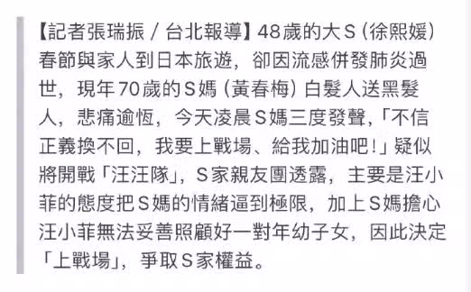 S媽發文疑要爭孩子,陶晶瑩力挺具俊曄爭財產,大S的體面還是碎了