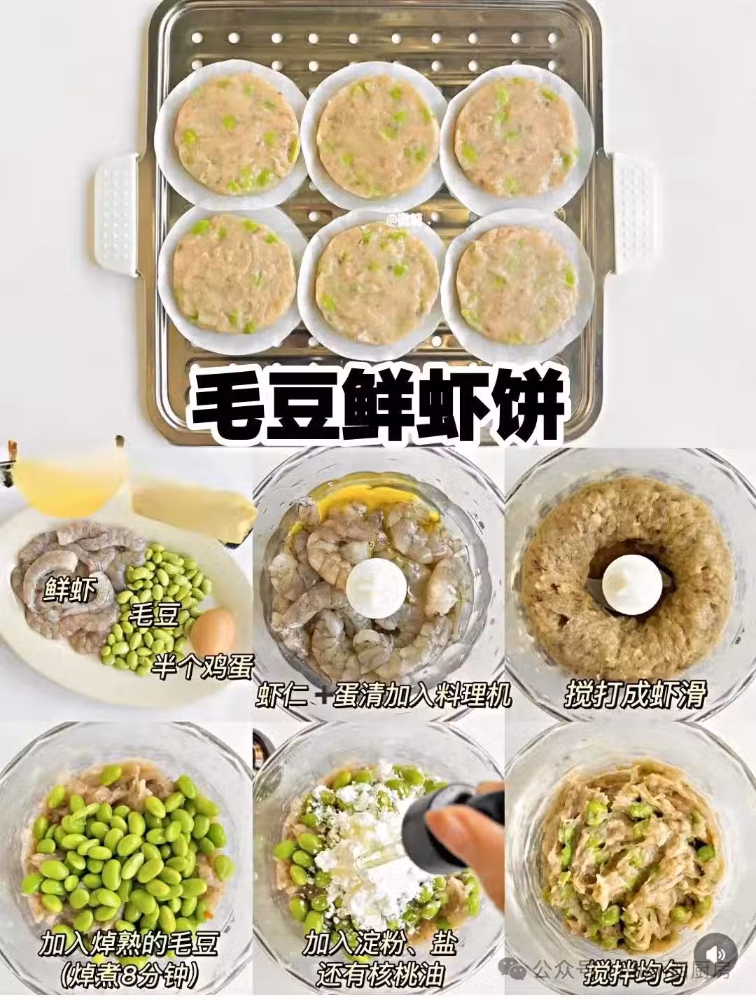 • 毛豆100克,焯水8分鐘至熟透,撈出備用。3. 混合材料: