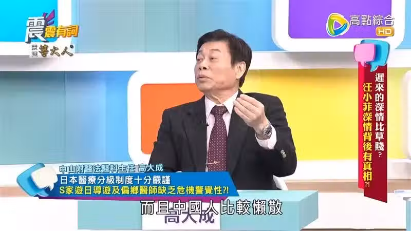 大S去日本玩,沒想到發生流感引發肺炎過世的憾事,至今許多人仍無法接受,尤其她明明還算年輕,對此,曾待過日本,又有法醫身份的高大成指出,臨床方面,日本其實跟台灣差不多,更點出會發生這樣的事情,可能有一部分和「導遊」也有關。