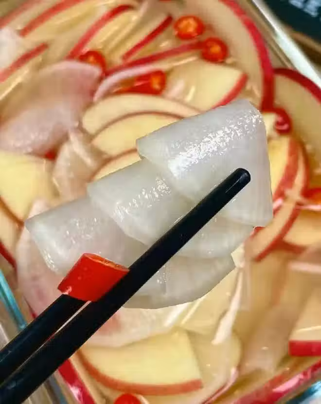 你可能會好奇,為什麼蘋果和醋搭配在一起會有這麼特別的味道呢?其實,蘋果本身就帶有一股清甜的味道,經過醋的浸泡後,不僅保留了原有的果香,還增添了一種獨特的酸爽感。再加上一點小米辣的點綴,整道菜既清爽又開胃,非常適合搭配油膩的食物一起食用。
