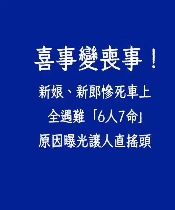 喜事變喪事!新娘、新郎慘死車上全遇難「6人7命」原因曝光讓人直搖頭……