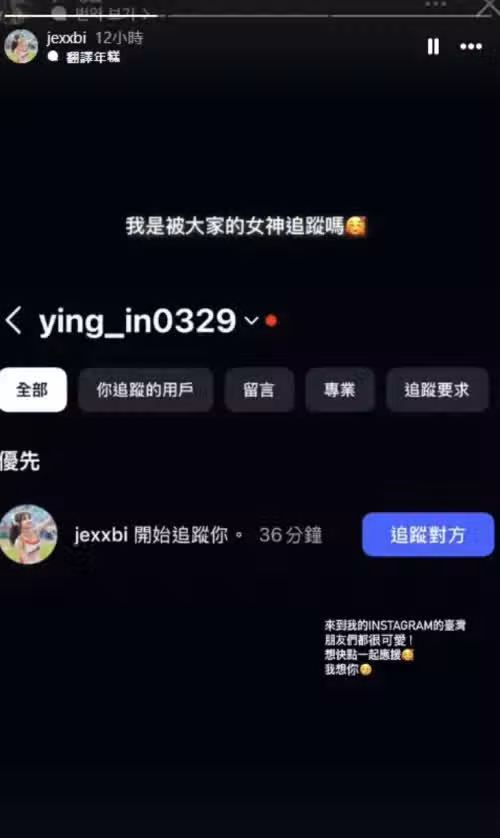 ▲全恩菲在動態中標註盈瑩,並喊道:「想快一點一起應援。」疑似是準備加盟中信兄弟,因為盈瑩並非本次CT Amaze陣容,因此不會在2月21日至25日與全恩菲同台。(圖/IG jexxbi)