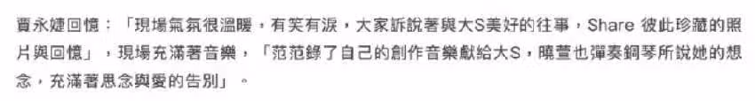 在追思會結束後,賈永婕接受了台媒的採訪,透露了這次追思會的具體內容。