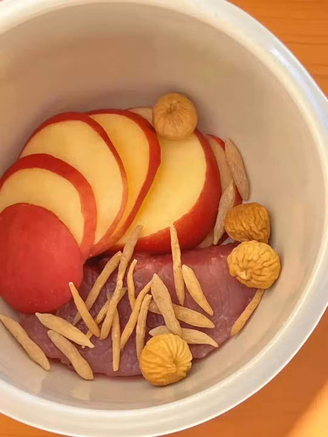 太子參8克,麥冬6-8克,蘋果1個,瘦肉100克