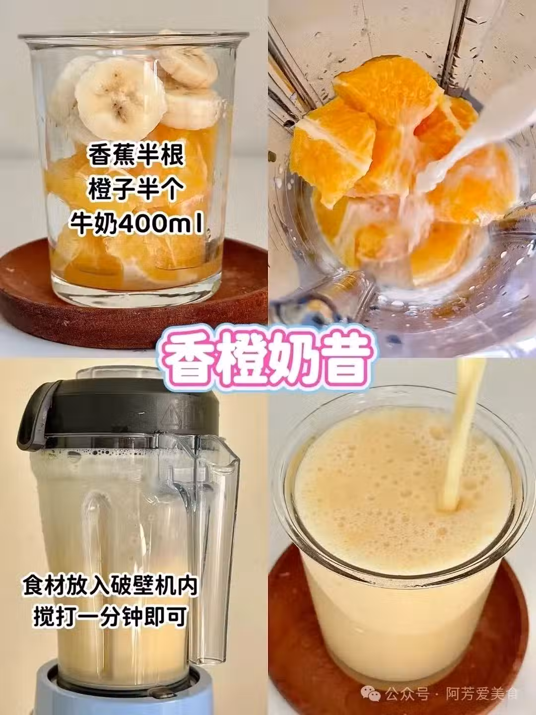 香橙奶昔,喜歡吃酸甜一點的寶子們可以喝這款,橙子香甜多汁,又帶著些酸,和牛奶還有香蕉混合,非常的驚艷。