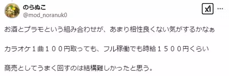 「宅宅真的都不喝酒的,所以這種店要光靠飲料賺錢根本不可能,應該要改成計時制才對。像是前1小時N圓,以後每30分收X圓這種,否則真的很難經營下去。」