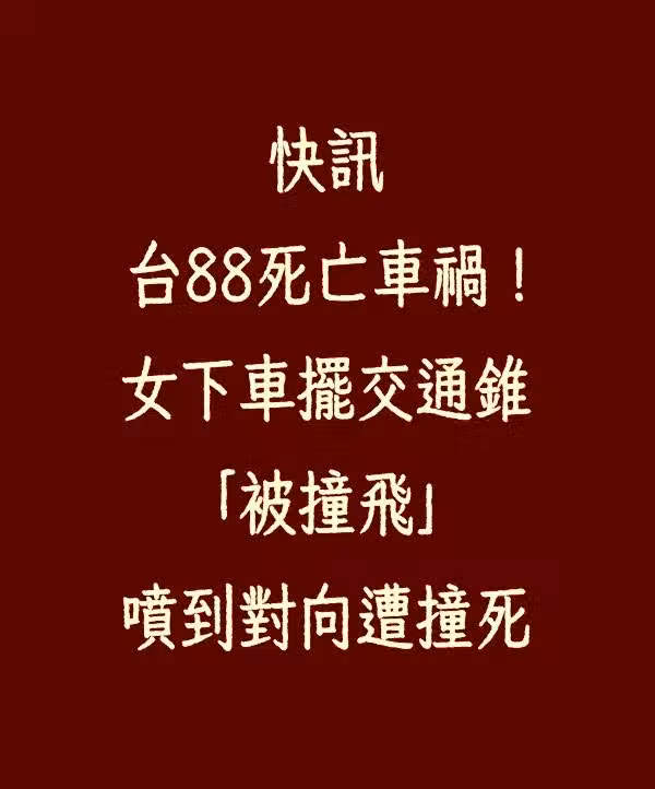 台88死亡車禍!女下車擺交通錐「被撞飛」 噴到對向遭撞死…