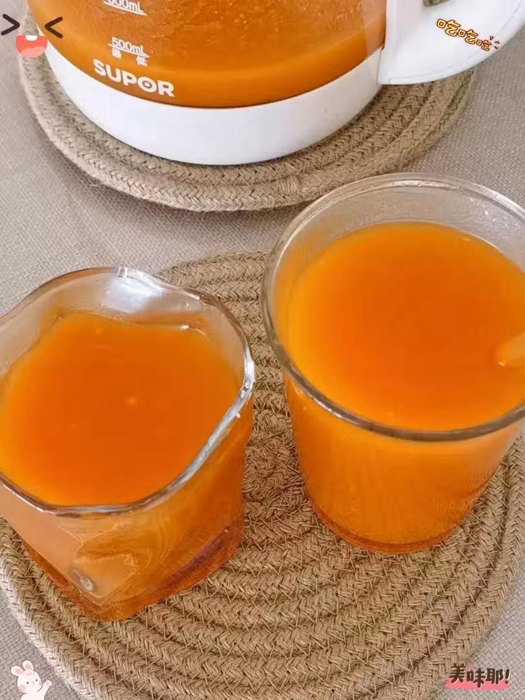 4. 打好的飲品倒入杯中,根據個人口味加入適量蜂蜜攪拌均勻,一杯熱乎乎的蘋果胡蘿蔔熱飲就做好啦!