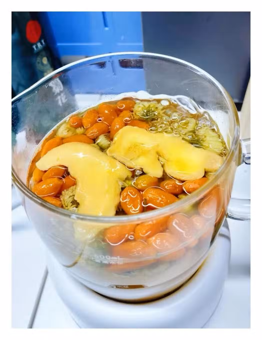 把這些食材洗一洗,放進養生壺,加上600毫升清水,用花茶模式煮上15分鐘就好了。
