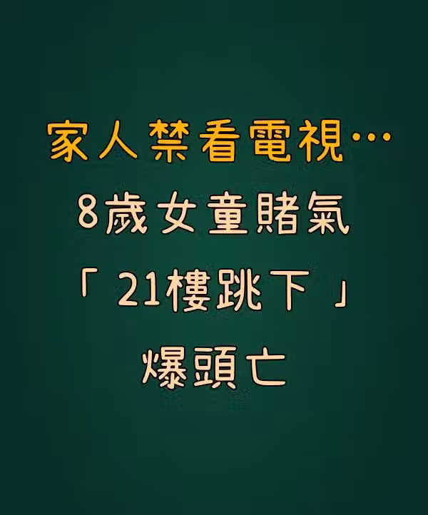 家人禁看電視...8歲女童賭氣 21樓跳下「爆頭亡」!