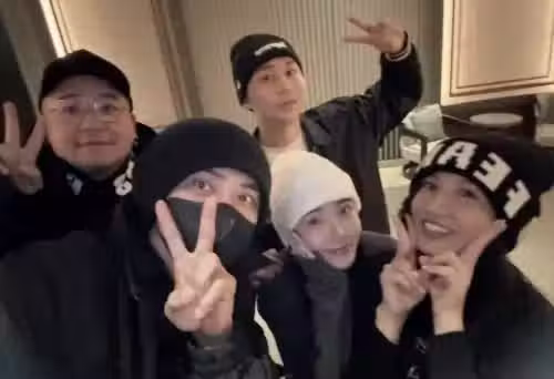 ▲羅志祥(前排左)曬出一行人合照,證明與他共游東京的並非周揚青本人。(圖/IG showlo)