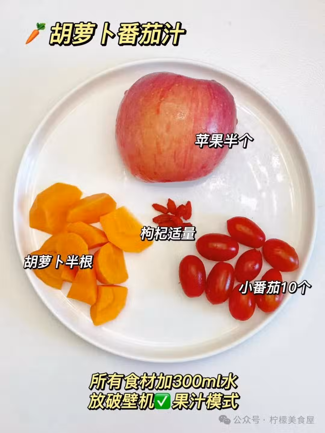 蘋果半個、胡蘿蔔半根、枸杞適量、小番茄10個